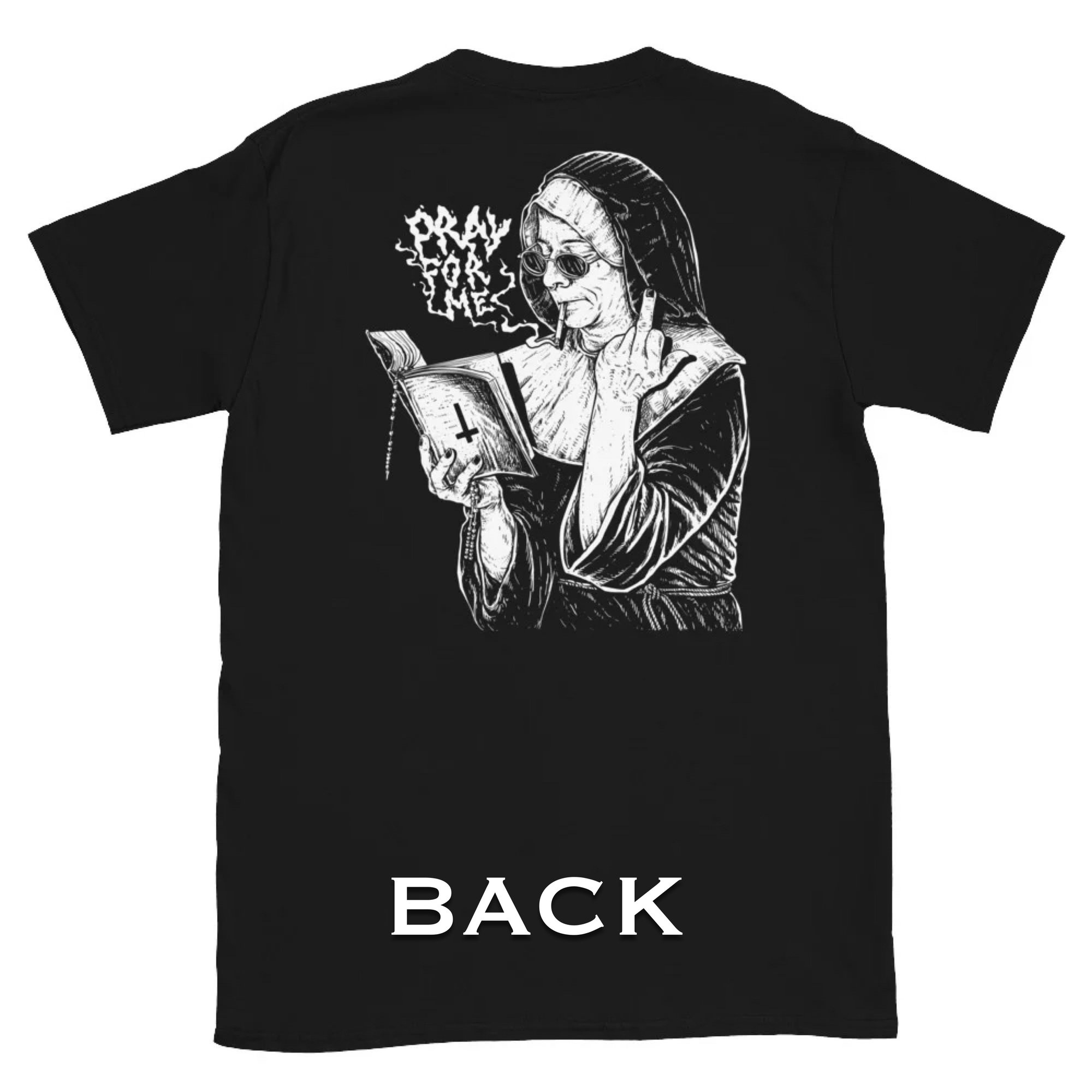 THIS SHIRT HAS THE SMALL CREST LOGO ON FRONT AND NUN DESIGN ON BACK OF SHIRT.